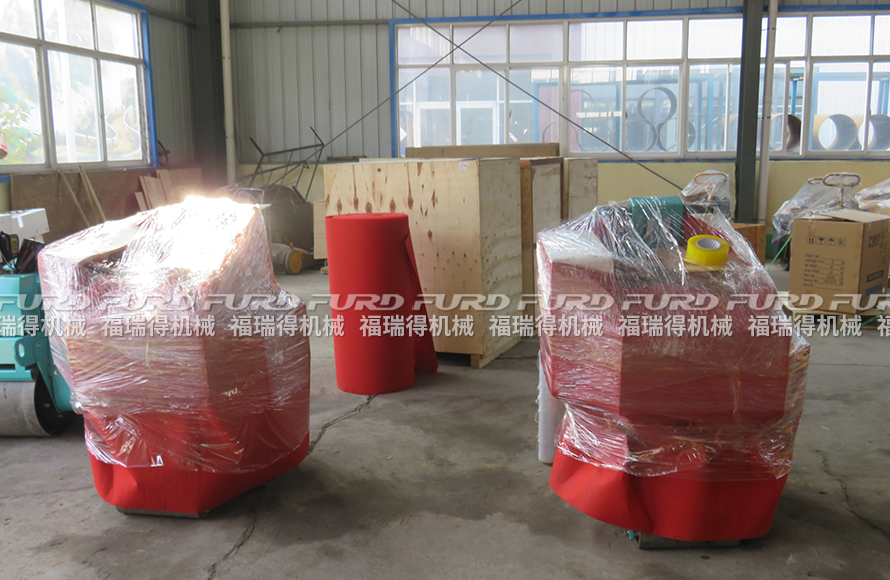 福瑞得5臺手扶壓路機打包裝車發(fā)往廣州