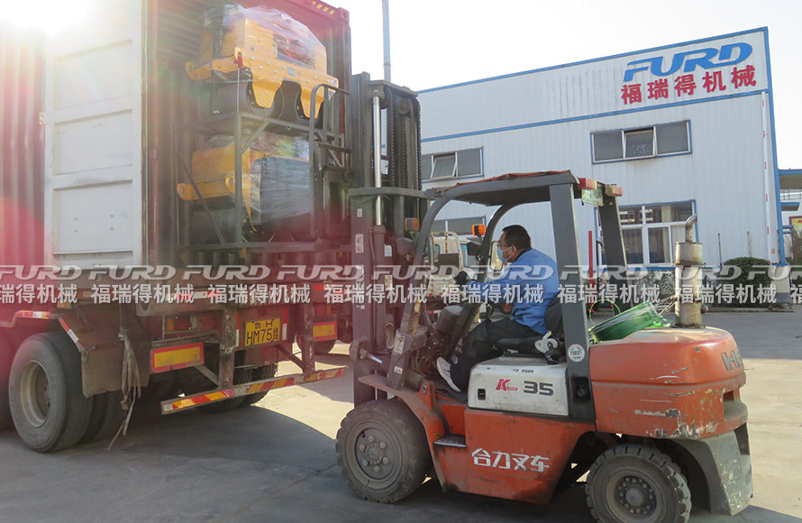 2月21日,福瑞得機械10臺手扶雙輪壓路機、2臺手扶單輪壓路機和1臺座駕壓路機裝車出口新加坡,這是福瑞得機械年后剛上班出口的第一批壓路機訂單。