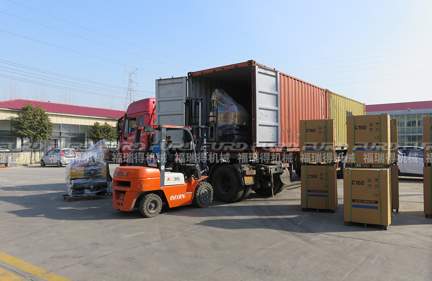 2月22日,福瑞得機械5臺手扶壓路機和18臺平板夯打包裝車發(fā)往埃塞俄比亞。