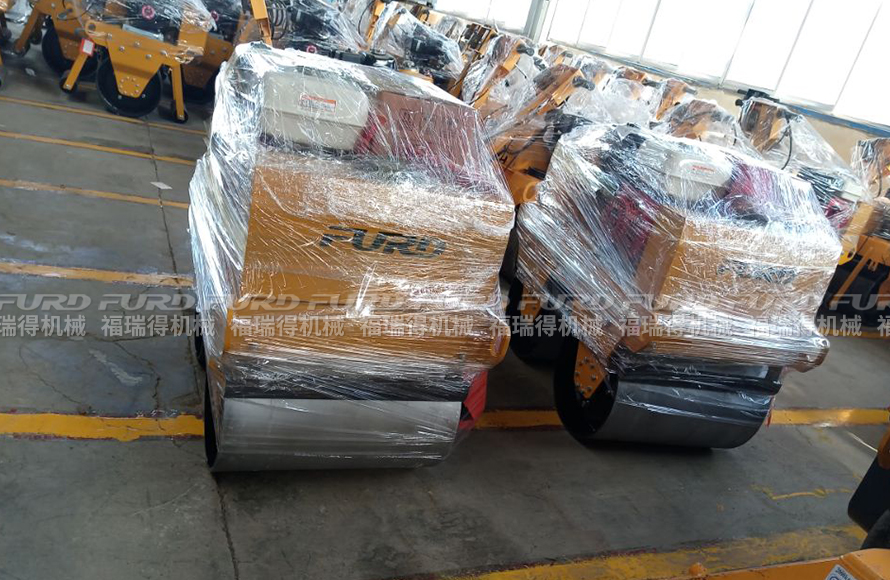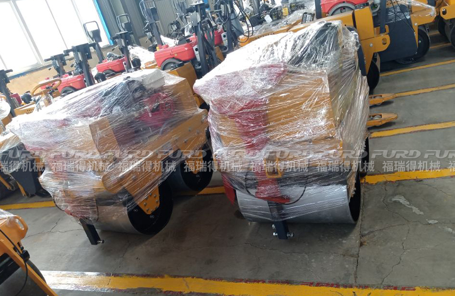 福瑞得2臺(tái)手扶雙鋼輪壓路機(jī)打包發(fā)往菏澤市