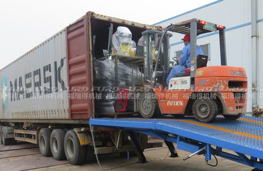 福瑞得18臺(tái)手扶/座駕壓路機(jī)裝箱出口印度