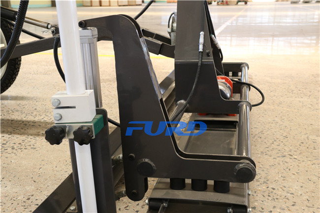 通過(guò)液壓驅(qū)動(dòng)輛輪行走系統(tǒng),使得輪子可以獨(dú)自運(yùn)動(dòng),與整平頭互不影響,使用手動(dòng)控制輪子的前進(jìn)、后退、轉(zhuǎn)向及行進(jìn)速度,移動(dòng)非常方便。