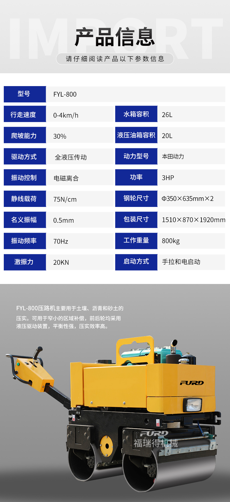 主要用于溝渠基礎(chǔ),道路,體育場(chǎng)地的壓實(shí)整平,也可用于壓實(shí)瀝青表面的作業(yè)。