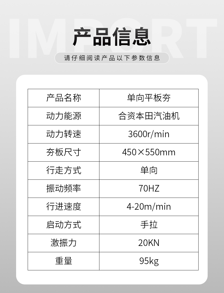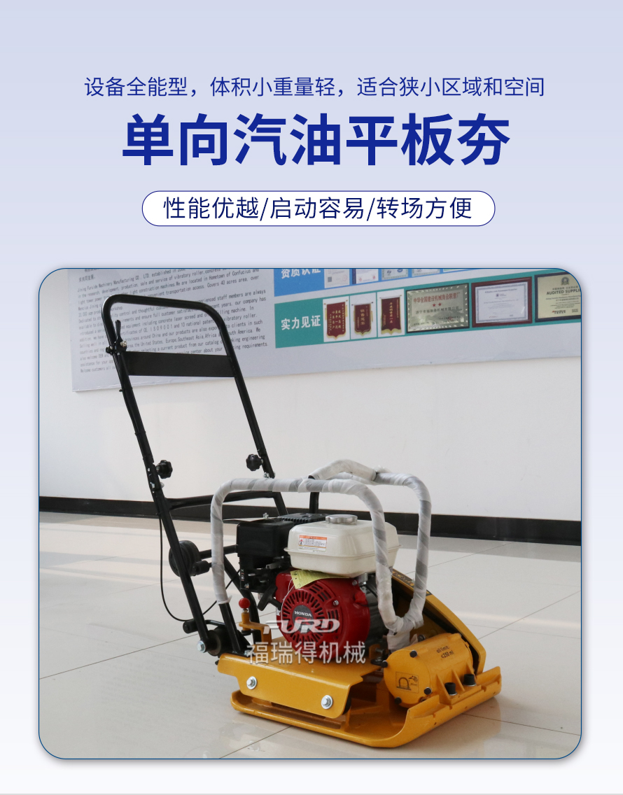 適用于路基邊緣、橋涵、管道、溝槽底部等狹長(zhǎng)地帶的壓實(shí)。 本田汽油動(dòng)力,名牌品質(zhì)保證。