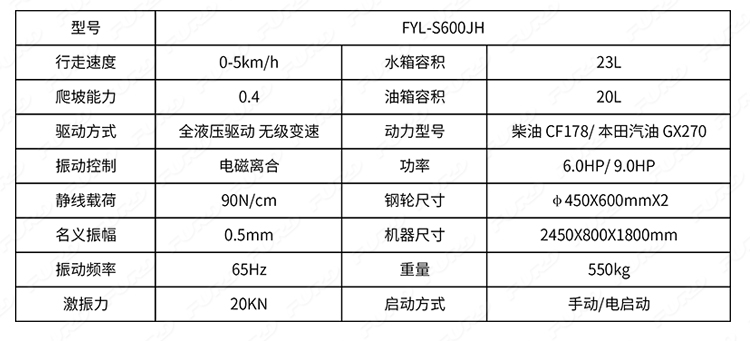 FYL-S600JH 手扶靜液壓雙鋼輪振動(dòng)壓路機(jī)