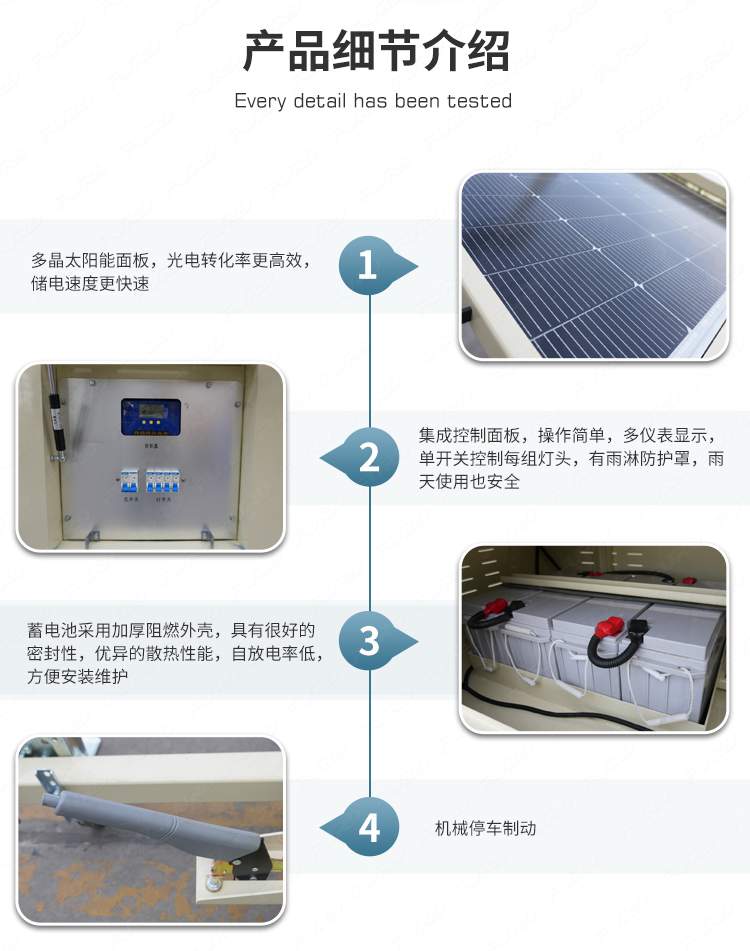 我們開發(fā)了一種新產(chǎn)品,叫做太陽能光塔,它的設(shè)計理念是節(jié)能環(huán)保。它可以長時間部署在偏遠地區(qū),并由太陽能自行供電。它通過可調(diào)節(jié)的太陽能電池板自動充電,運行干凈,安靜,高效。