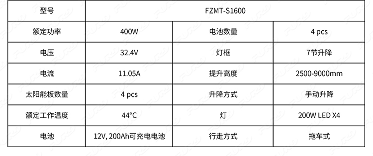 FZMT-S1600 9米可移動升降太陽能燈塔